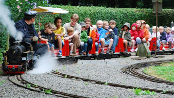 Von Anfang Mai bis Anfang Oktober sind Kinder und Erwachsene eingeladen, auf den originalgetreu nachgebauten Miniaturzügen mitzufahren.